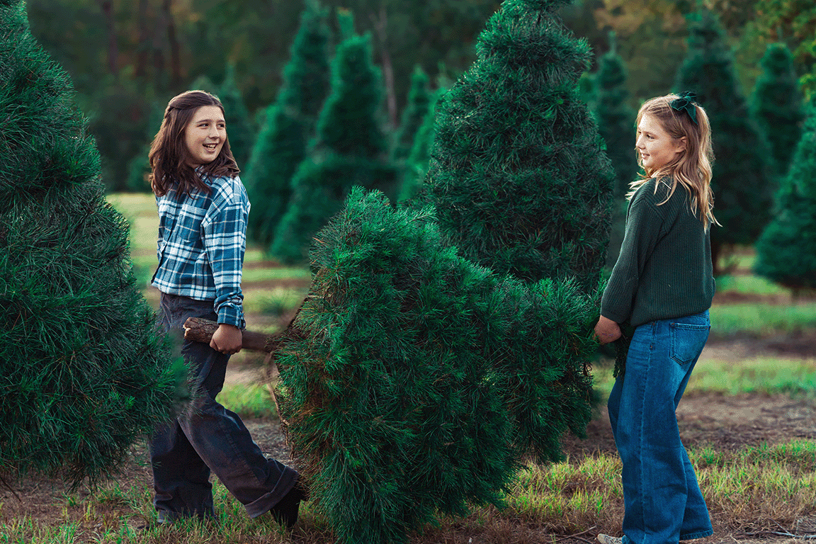 We raise our own Virginia pines, which take five to six seasons to grow. Besides making an excellent nesting site for woodpeckers, Virginia pines respond well to pruning, have strong branches to support ornaments, and are well-suited to our region’s soil and climate.